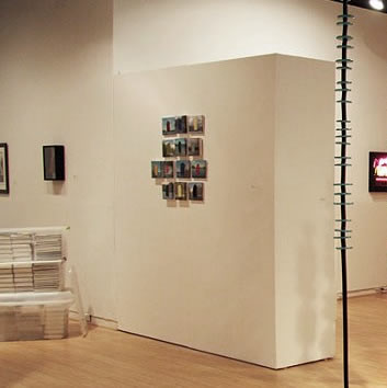 Dozens of oil and acrylic on color laser prints on canvas, 3 frosted plastic storage bins, 2006 – 2009.